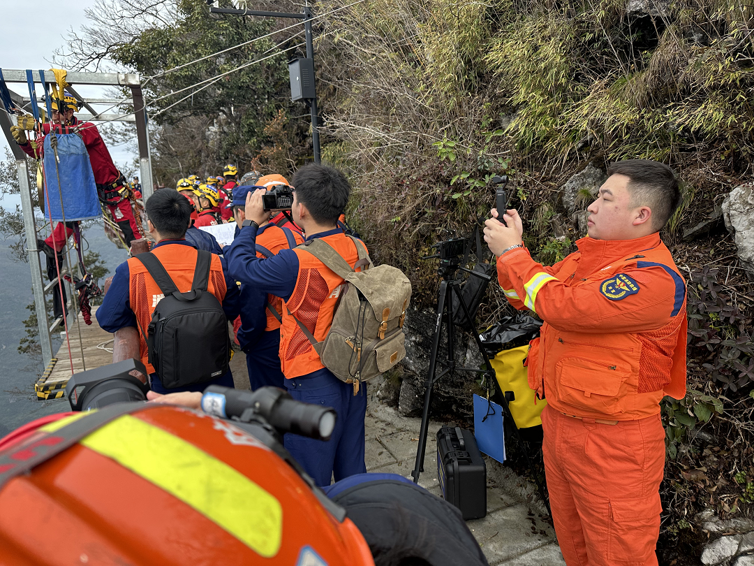 此次比武以總隊在張家界市舉辦的全省消防救援隊伍高空(山岳)繩索救援專業(yè)技術交流活動為背景,嚴格遵循實戰(zhàn)要求,設置出發(fā)集結、裝備點驗、每日稿件報送、制作演練紀錄片等競賽科目,全面錘煉宣傳人員在復雜環(huán)境下的應急響應、素材采集與內容創(chuàng)作能力。